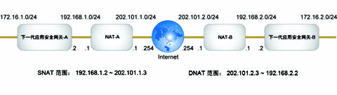 在第二个示例中,下一代应用安全网关位于 NAT 设备后面。