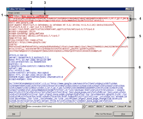 要为您的过滤器确定一些组件,这有助于针对 HTTP 请求或响应运行数据包捕获。请参阅用于 Google 搜索的数据包捕获中的示例捕获和数据包捕获中显示的组件(续)中的说明。