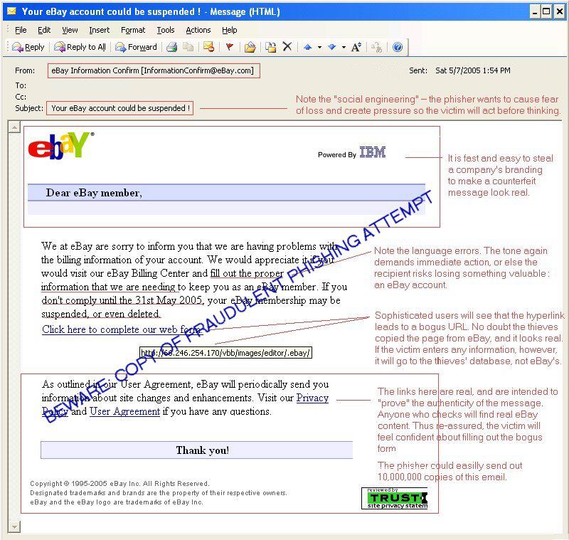 In a typical scenario, unsuspecting users get an urgent sounding (and authentic looking) email telling them there is a problem with their account that they must immediately fix to avoid account termination. The email will include a URL to a Web site that looks exactly like the real thing. It is simple to copy a legitimate email and a legitimate Web site but then change the so-called backend, which receives the collected data.
