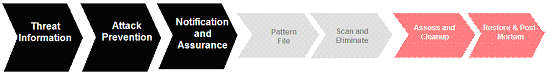 Outbreak Prevention Services delivers notification of new threats and continuous and comprehensive updates on system status as an attack progresses. The timely delivery of detailed virus data coupled with predefined, threat-specific action and scanning policies delivered immediately after a new threat identification allows enterprises to quickly contain viruses and prevent them from spreading.