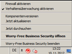 Nur verfügbar, wenn der WFBS-Administrator Ihnen die Rechte zum Beenden des Security Agent eingeräumt hat.