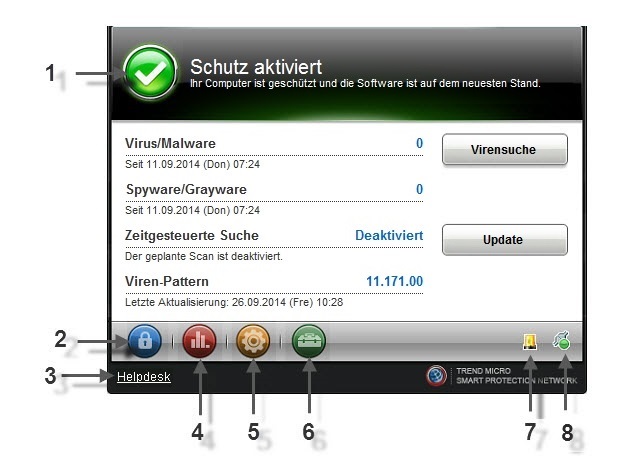 Zeigt Informationen zum aktuellen Status des Security Agent sowie des von ihm geschützten endpunkt an. |