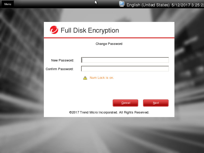 - Start the endpoint and wait for the Full Disk Encryption preboot to appear.