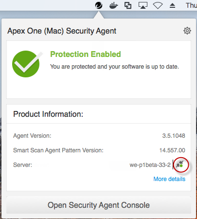 The icon on the Security Agent console from the system tray indicate the parent server connection status.