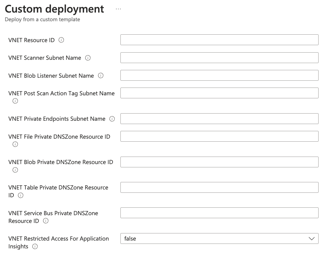 - Application Insights and Log Analytics workspace: Our deployment includes a parameter that lets you control public network access to the Application Insights and Log Analytics workspaces. If you disable public network access, we strongly recommend adding those resources to Azure Monitor Private Link Scopes (AMPLS). This ensures that logs are only ingested and queried from authorized sources, protecting your data from unauthorized access.