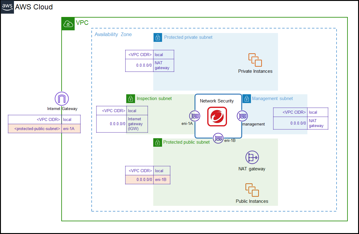 Allows you to access Network Security from the CLI and the Network Security management interface. - VPC: Select the Inspection VPC.