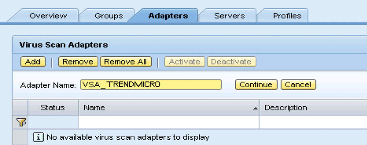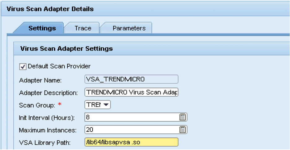 Configure the SAP Virus Scan Interface (VSI) by calling the following transactions. See Configure SAP to use the agent.