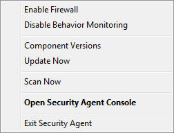 Shortcuts to tasks that users perform frequently are available when right-clicking the Security Agent icon in the Windows Task Bar.