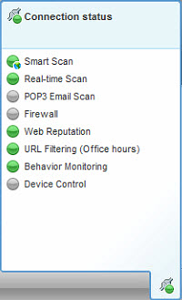 Not connected to the WFBS-Services Server, but real-time scan is still running. The pattern file may not be up to date. Right-click the agent icon in the Windows Task Bar and click Update Now. |