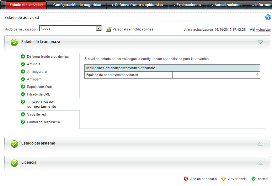 Esta sección muestra información sobre el estado de la licencia del producto y, más concretamente, información sobre la caducidad.