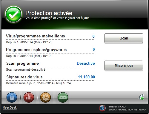 Vérifiez que vous êtes connecté à votre réseau afin de lancer un scan avec les derniers fichiers de signatures.