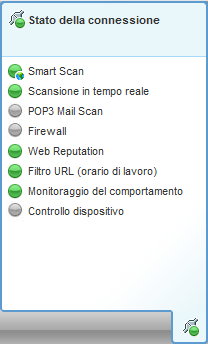 Il flyover della console di Security Agent si apre quando si sposta il puntatore del mouse sulla piccola icona in basso a destra della console di Security Agent.