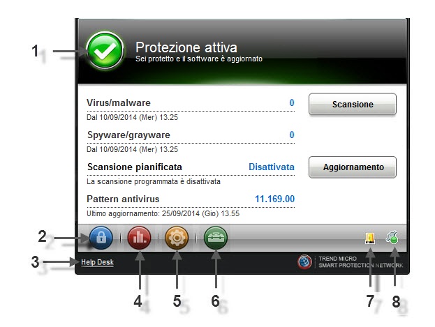 Visualizza le informazioni relative allo stato corrente di agente e del dispositivo che protegge. |