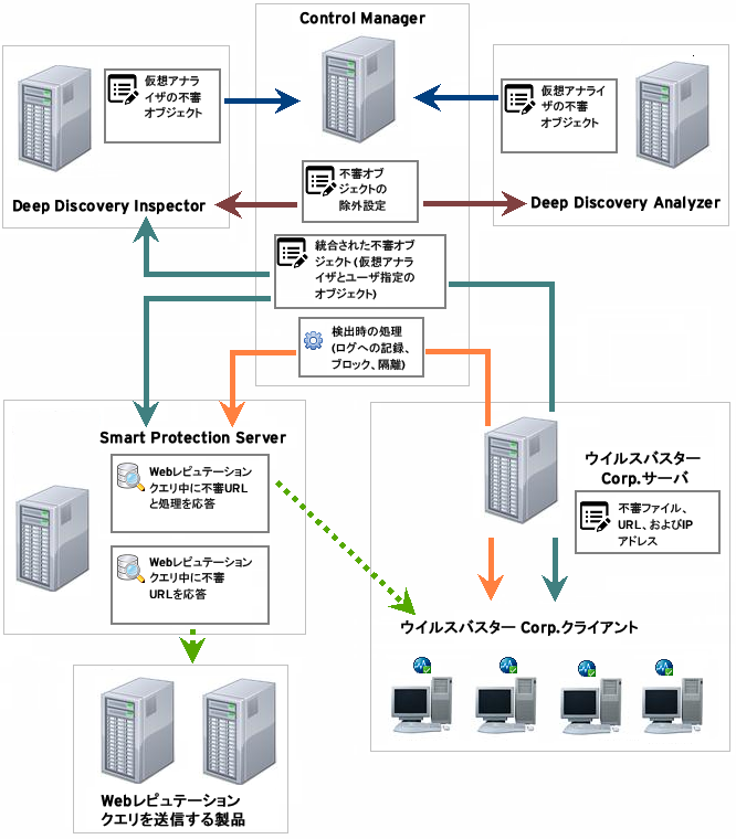 Control Managerが、不審オブジェクトとそのオブジェクトに対する検出時の処理をまとめ、他の製品に配信します。
