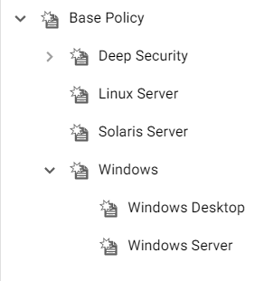 Virtual Appliance用に設計された子ポリシーの2つがあります。これは役割ベースのツリー構造です。Deep Securityには、Linux、Solaris、およびWindowsの特定のオペレーティングシステム用に設計された3つのブランチもあります。Windowsブランチには、さまざまなサブタイプのWindowsオペレーティングシステム用のさらに子ポリシーがあります。