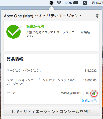 Apex One (Mac) サーバに接続している。 |