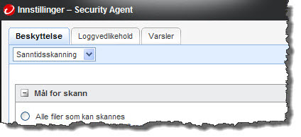 Hvis rettigheter har blitt tildelt av administratoren, kan brukerne tilpasse Sikkerhetsagent-innstillinger.