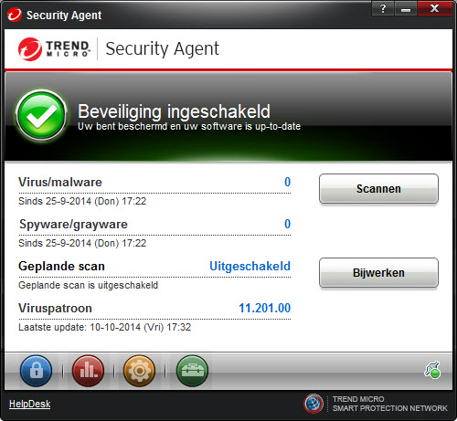 De volgende afbeelding toont de console van Security Agent. Alle instellingen zijn up-to-date en werken goed: