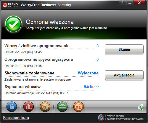 Sygnatura wirusów pochodzi sprzed więcej niż 3 dni. Zaktualizuj niezwłocznie program Security Agent. |