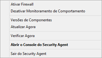 Atalhos para tarefas que os usuários executam com frequência estão disponíveis ao clicar com o botão direito do mouse no ícone do agente na Barra de Tarefas do Windows.