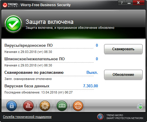 Защита включена: устройство защищено и программное обеспечение обновлено |