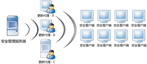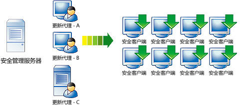 更新代理是安全客户端,它们可以从安全管理服务器或 ActiveUpdate 服务器接收更新的组件,并将它们部署到其他安全客户端。