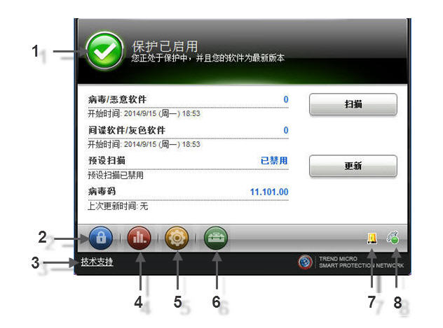 显示安全客户端及其所保护终端的当前状态相关信息。
