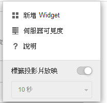 在「伺服器可見度」清單上,新增伺服器到「伺服器可見度」清單,或是進行 Proxy 伺服器設定以利連線到「伺服器可見度」清單中的伺服器。在所有 Widget 中編輯伺服器資訊的方式都相同。