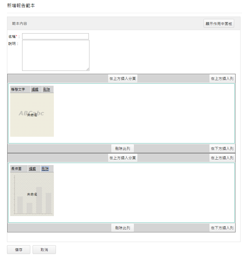 會出現「編輯報告範本」畫面。