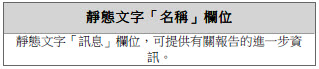此工作假設您已新增「靜態文字」報告項目到自訂報告範本列。