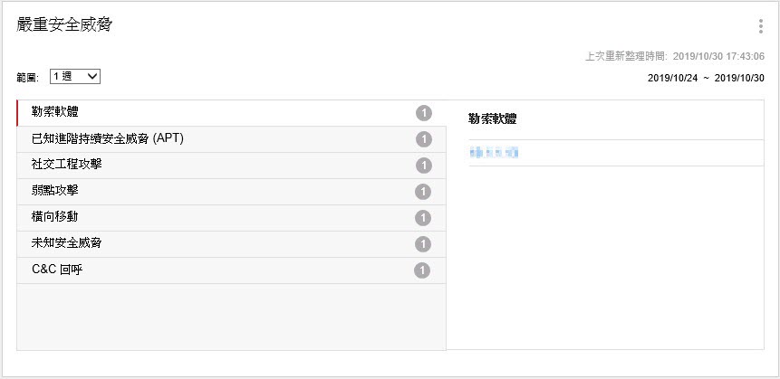 按一下某個嚴重安全威脅類型,可檢視特定安全威脅偵測。