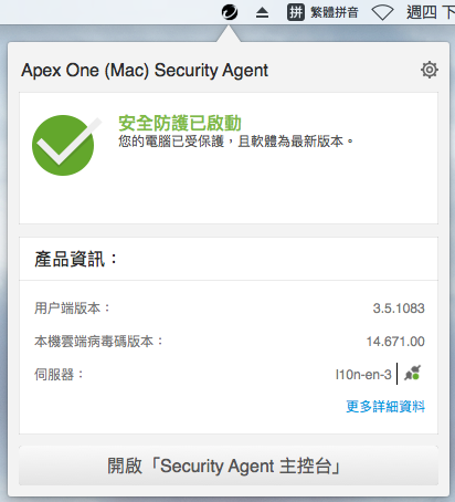 按一下端點上系統匣中的 Security Agent 圖示,然後按一下「開啟 Security Agent 主控台」。